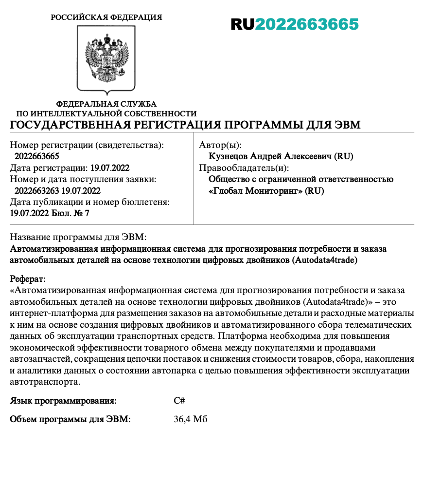 Огромный потенциал коммерциализации платформы возникает в связи с созданием и развитием российской сервисной навигационно-телематической платформы «Автодата», которая обеспечивает формирование массива статистических и аналитических данных о колесных транспортных средствах, дорожной инфраструктуре и иной информации в транспортной сфере, связанной с логистикой людей и вещей.